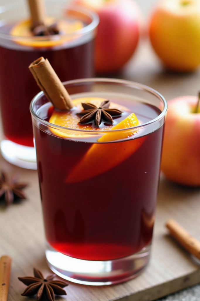 - In a pot, combine apple cider, orange slices, cinnamon sticks, cloves, and star anise.