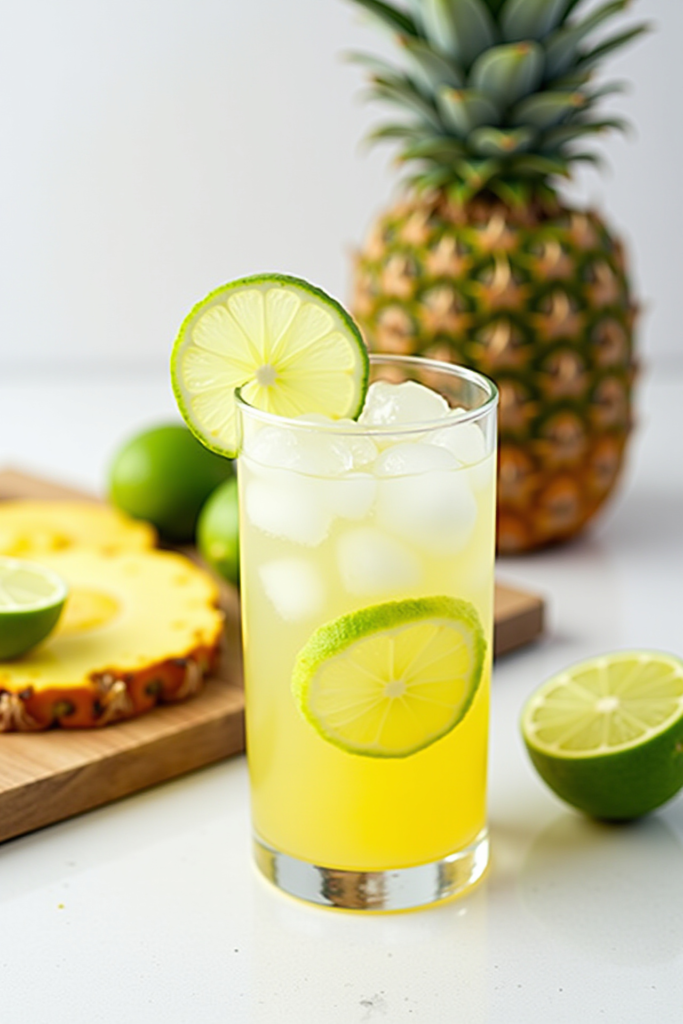 To build your mocktail, fill a glass with ice and pour in your prepared pineapple base. Top generously with sparkling water and stir gently to combine. Garnish with a wedge of pineapple or a sprig of fresh mint for a professional touch and some extra aromatic appeal.